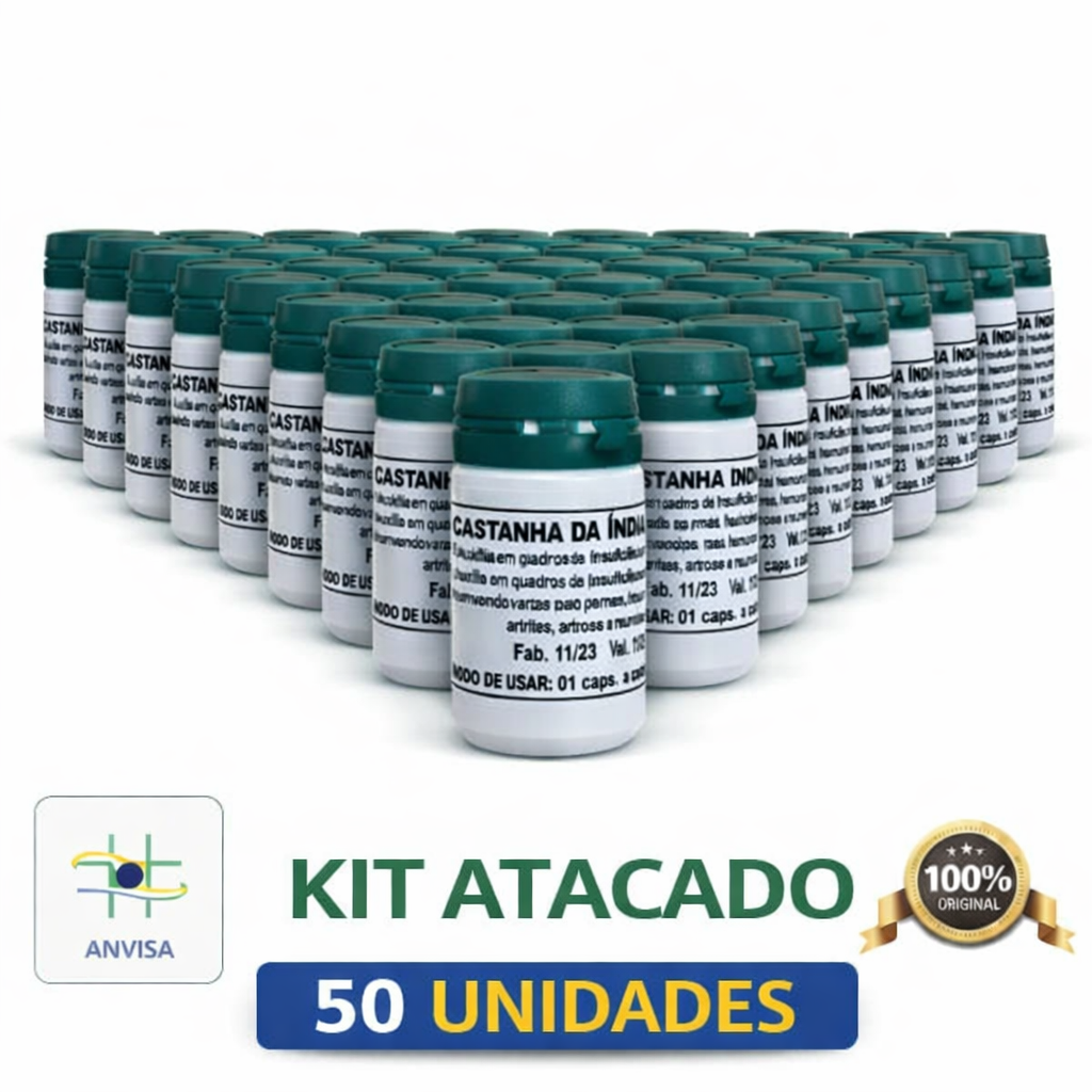 O Kit 50 Castanha Caseira da Índia Original 30 Cápsulas é um suplemento alimentar de origem vegetal desenvolvido para complementar a rotina de cuidados com o bem-estar. Cada frasco contém cápsulas práticas, ideais para o consumo diário.