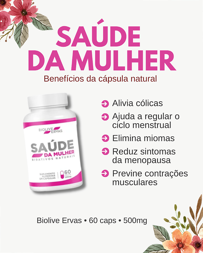 Saúde da Mulher Biolive Ervas – 60 Cápsulas | 500mg 🌸🌿